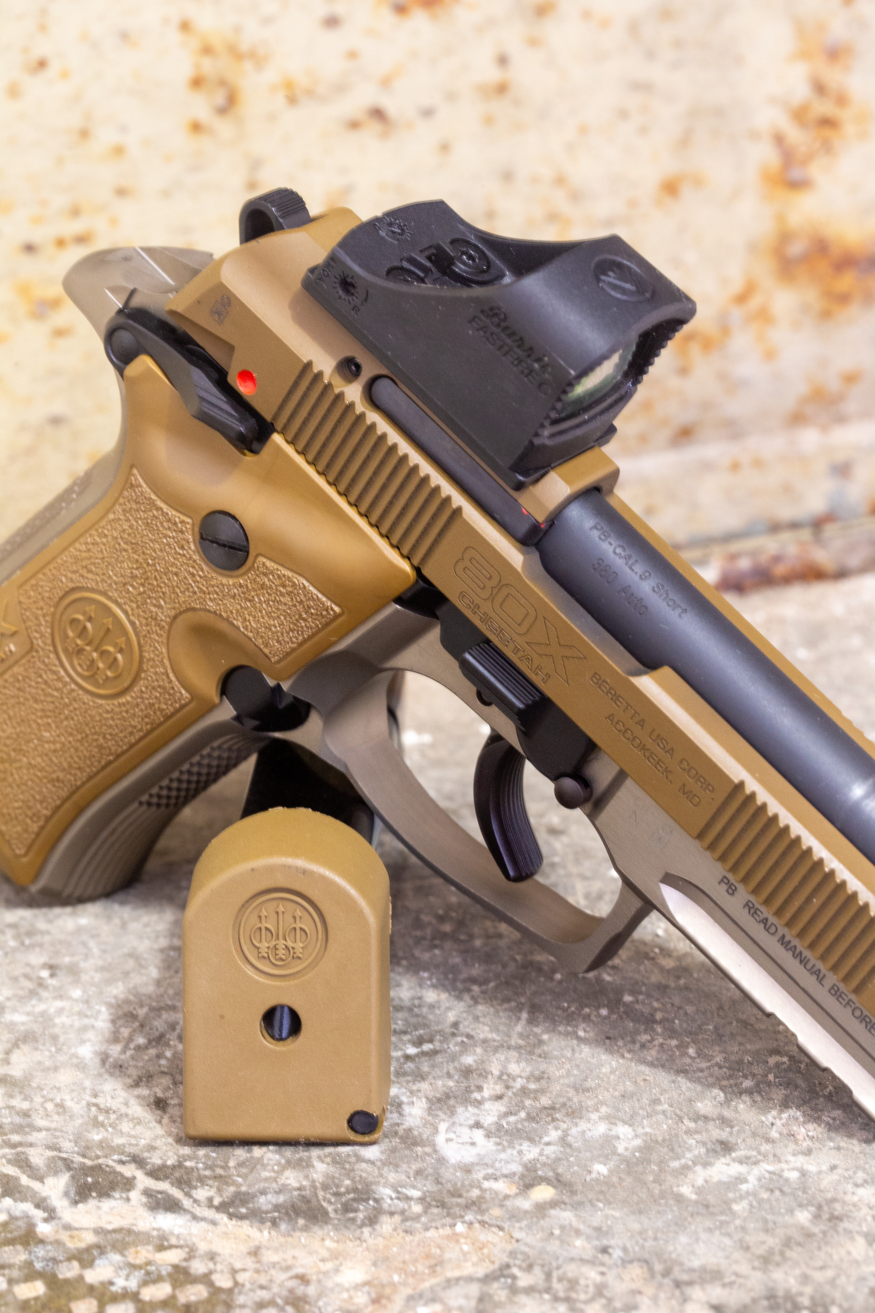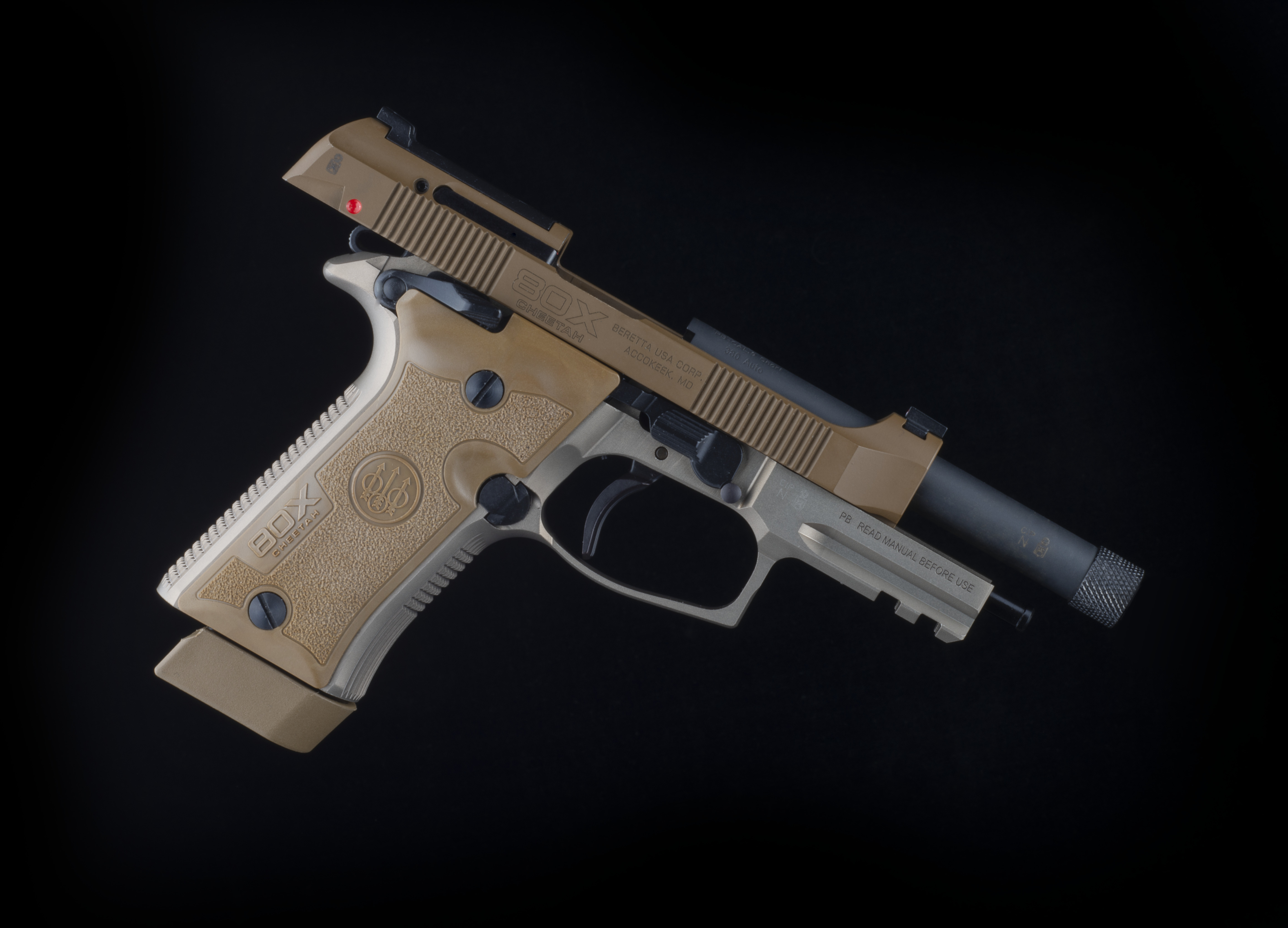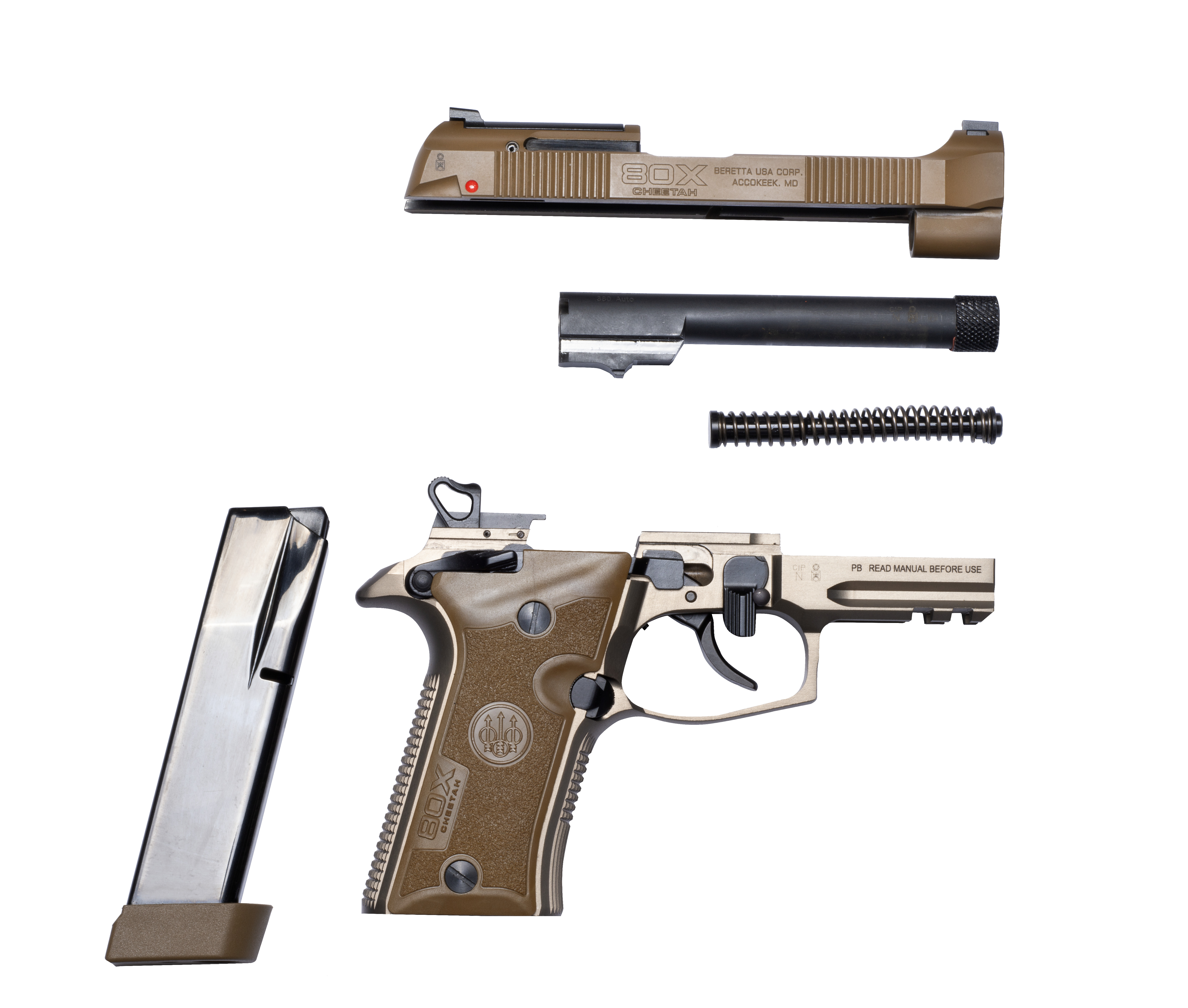 Beretta livre une arme avec plus d’options : le 80X Cheetah tactical FDE est RDO-ready via un couvercle amovible, rail Picatinny 2 slots pour lampe/laser ; à noter les organes de visée interchangeables. Et pour finir la firme trois fois centenaire livre un pistolet plus ambidextre : sécurité sur carcasse avec decocking et bouton de chargeur réversible.