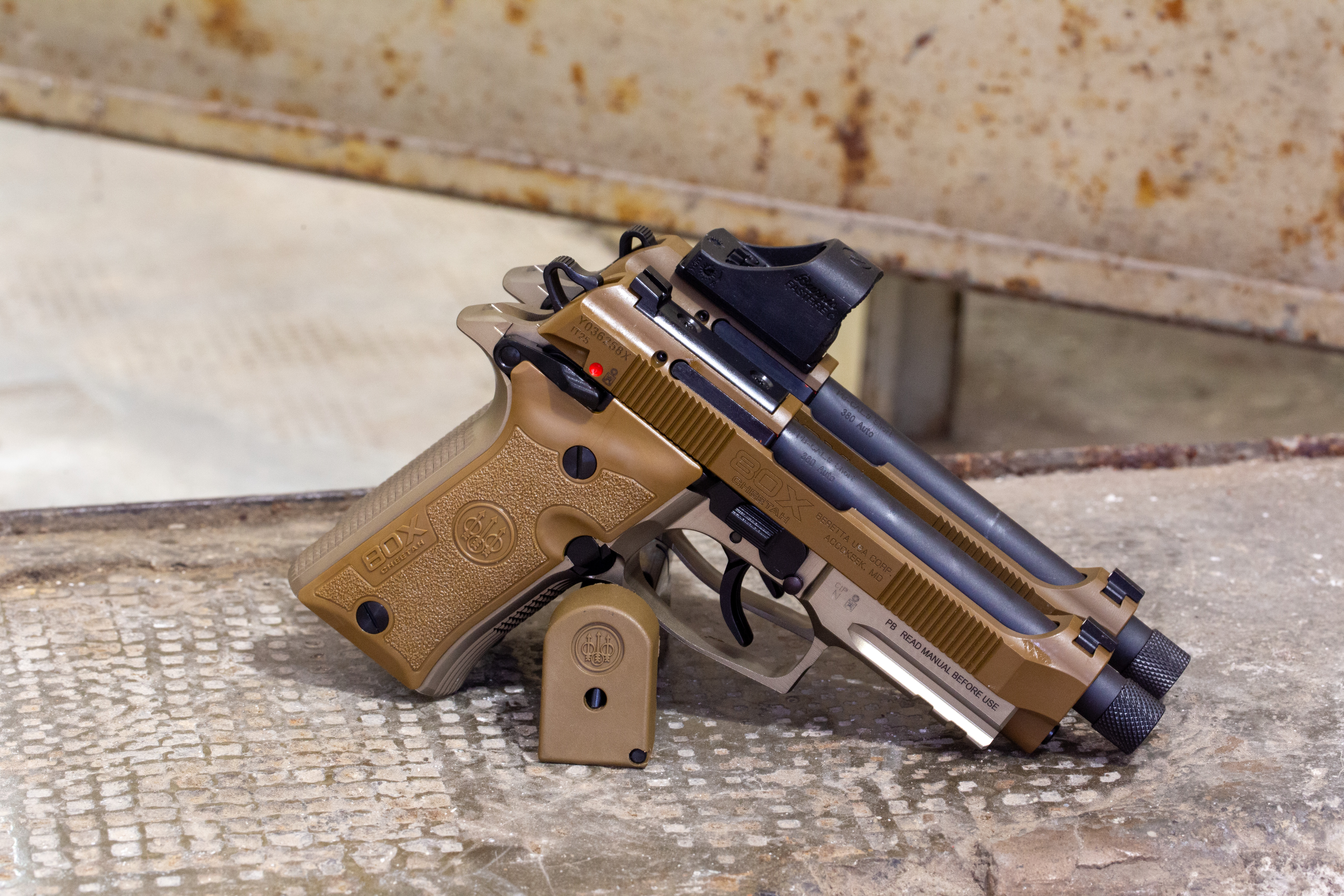 Beretta décline son 80X Cheetah dans une version Tactical FDE : canon fileté 1/2×28, capacité portée à 15+1 coups, glissière Desert Cerakote et carcasse anodisée bronze. Toujours RDO-ready pour monter un point rouge et en détente SA/DA, ce pistolet reprend les codes de la série 90 M9A3 pour conjuguer style italien et exigences tactiques.