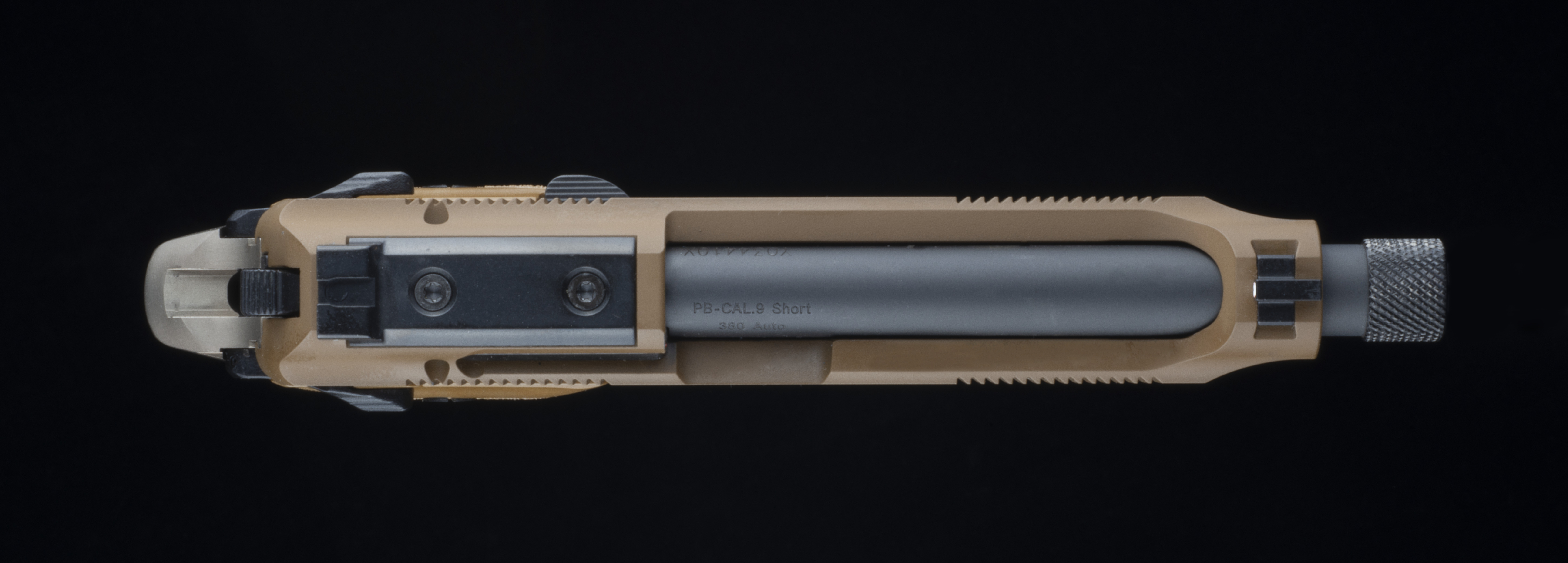 Le canon est fileté au pas de 1/2×28 afin d’installer un modérateur de son ou compensateur de recul. La capacité a été augmentée pour accueillir plus de cartouches : 15+1 coups en 9x17 mm (.380 ACP) pour un format compact. Le quadrillage avant/arrière a été revu pour apporter un meilleur grip ; stries « scie » sur la glissière, beavertail allongé, chien squelettisé et pontet « combat » pour couronner le tout !