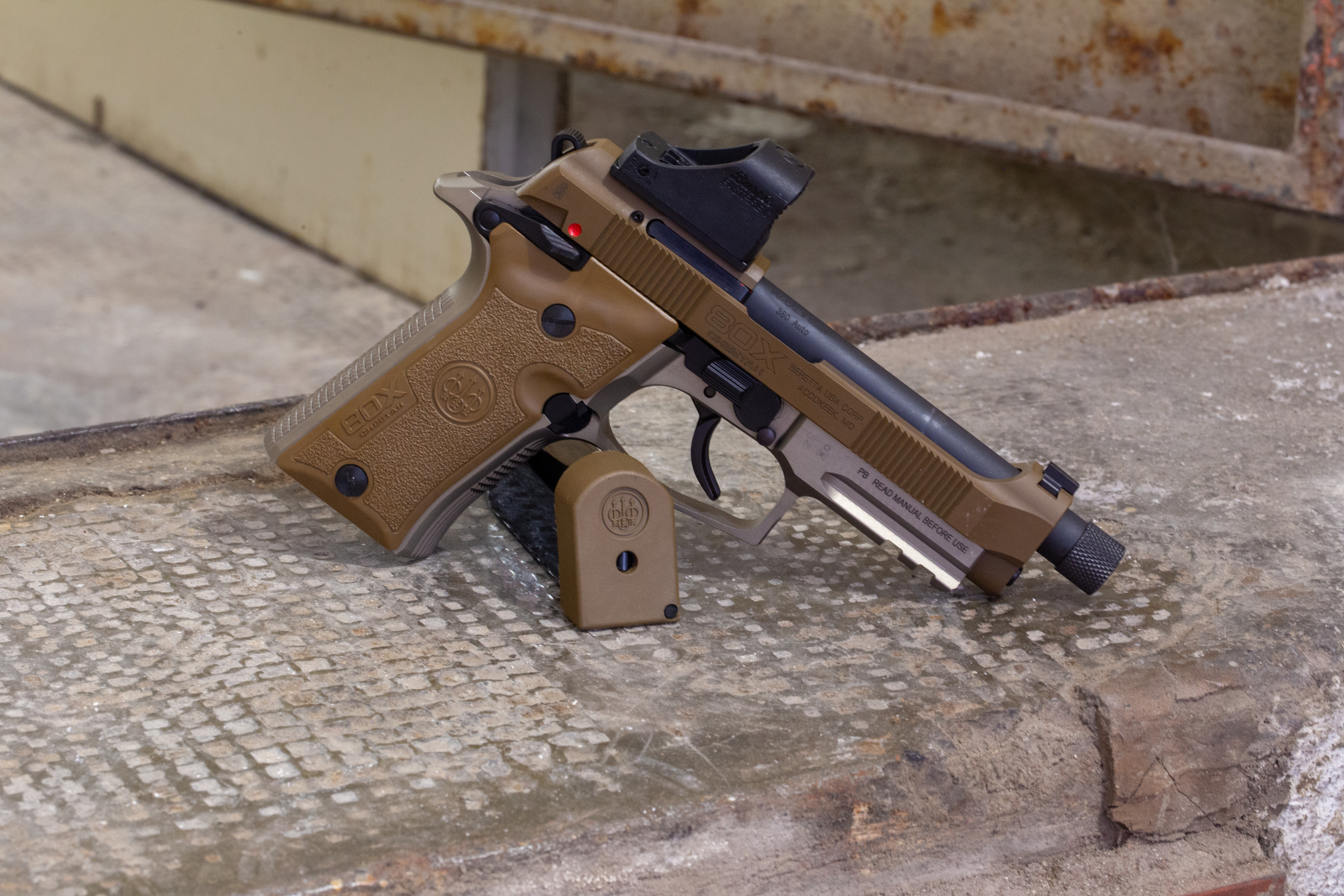 Cette Tactical FDE se distingue par une glissière Desert Cerakote, une carcasse anodisée bronze et des plaquettes/talon FDE interchangeables : une signature esthétique qui fait écho à la 90-Series M9A3, entre héritage Beretta et modernité « tactique ».