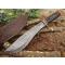 ACIER DAMAS - COUTEAU - 38 CM - BOIS DE NOYER - ÉTUI CUIR