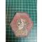 Support : Feutre de laine bleu/gris (bleu horizon/gris de fer) de forme hexagonale. Cette nuance de tissu est caractéristique des productions locales pour les troupes américaines stationnées en France.