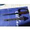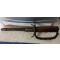 Poignard de tranchée WW1 US 17 2eme modèle réglementaire, lame triangulaire en acier bleu foncé avec traces de rouille stabilisées. Il a été conçu pour transpercer les lourds tissus poignée en noyer avec garde acier cintrée formant un coup de poing américain à 7 dents pyramidales embouties dans la masse. Fourreau cylindrique pyramidale en cuir épais (certainement rentré en manufacture pour réparation par la mise en place de rivets en cuivre) , garnitures métalliques crochet laiton pour fixation sur ceinturon US. (modèle fabriqué à 113000 exemplaires)