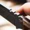 La position de la main, la forme de la lame et les ondulations prononcées au dos permettent des coupes puissantes, contrôlées et précises. Livré avec un étui rigide Kydex.