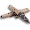 Lame lisse de 8,8 cm en acier au Cobalt N690 (54HRC) de6,3 mm d'épaisseur avec revêtement au nitrure de zirconium finition GeocamoLe manche qui tombe bien en main est en Forprène Desert (élastomère aux normes OTAN) et la finition des parties métalliques répond aux normes OTANMIL-C-13924