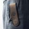 Etui magnétique en nubuck marron raffiné surpiqué et logo arbre Boker en relief.