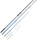 Ce montage particulier prend tout son sens sur les plages à faible pente où il est nécessaire de lancer loin. Après un lancer appuyé, l’hameçon se décroche de l’accroche appât à l’amerrissage. Laisser la ligne durant 15 minutes puis remontez-la pour vérifier les appâts. La canne de 4 à 4,50 m présente un grammage 100 à 150 g. Le moulinet est de taille 8 000 à 20 000 et d’un poids de 450 à 900 g. Il contient au moins 200 m de nylon fin en 0,20 à 0,28 mm. Avant le montage, on utilise un gros nylon (arraché) de la longueur de la canne en 0,50 mm.