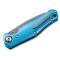 Des parties du triangle supérieur de la Camaro ont été utilisées pour la lame qui s'ouvre suavement avec la goupille bleue tandis que l'acier inoxydable vifLiner Lock verrouille le couteau. Ouverture par ergot de pouce bleu.