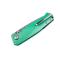 Des pièces du moyeu de roue, du bras transversal et de la suspension ont été utilisées pour la fine lame damassée à 84 couches et forgées à la main par Chad Nichols selon le motif Wavepool. La lame à roulement à billes avec son ricasso caractéristique s'ouvre en douceur au moyen du bouton-poussoir amovible et coupe en toute confiance grâce au couple puissant du design du manche et à la sécurité d'un verrou de verrouillage étudié. Les renfoncements pour les doigts dans le manche en aluminium léger et très résistant rappellent les ailes du mustang, coloration Silver Jade du manche.