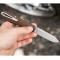 Lame stonewash lisse en acier MagnaCut métallurgique par poudre (61-62 HRC), affiné avec un ricasso décoratif pour venir à bout des tâches de coupe les plus exigeantes. Forme de la lame Drop Point avec encoche pour ouverture aisée.