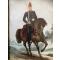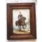 gravure de cavalier militaire, colorisée à la main, représentant un ARTILLEUR à cheval en tenue 1872 (dolman à brandebourgs, shako à plumet rouge, tapis de selle et porte-manteau ornés de la grenade rouge de l'artillerie). La gravure porte la mention "modèle déposé", la photographie du visage du soldat a été découpée et collée sous le shako à plumet rouge comme cela se faisait fin XIX / début XX° pour les articles de souvenirs militaires. Dans cadre bois 16 x 21cm et verre de protection. Au dos de la gravure cartonnée, mention à l'encre du nom prénom de l'artilleur et appartenance 9° régiment Artillerie Toulouse, 1° batterie montée. Poids emballé 250g