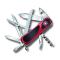 Couteau 16 fonctions avec côtes en bi-matière noir et rouge pour une meilleure prise en main, avec emblème Victorinox.