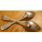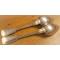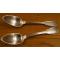 DEUX SUPERBES GRANDES CUILLERES A SOUPE ANCIENNES JE SUPPOSE EN PLACAGE D' ARGENT AVEC POINCONS DIVERS TRES BEAUX - POIDS TOTAL = 158grs - ENCORE EN EXCELLENT ETAT - POUR COLLECTION - POUR FONCTION - POUR OFFRIR - POUR REGARNIR UNE MENAGERE -