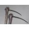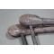 Les têtes en bois sont finement gravées de motifs géométriques (partiellement effacés par l'usage et le temps).