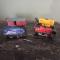 2 locomotives mécaniques + 2 wagon s anciens + clef à remonter