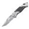 Le modèle à une main d'Herbertz, conçu comme un couteau de sauvetage, propose une lame en acier inoxydable AISI 420 au design camouflage. La poignée robuste en acier inoxydable est équipée d'inserts antidérapants G-10. Un coupe-ceinture et un brise-vitre sont intégrés à l'extrémité du manche. Le bouton de lame des deux côtés, le liner lock et le clip en acier inoxydable complètent l'équipement.