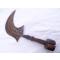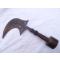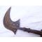 belle lame courbe en acier a deux tranchants , légère oxydation faisant patine sombre