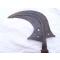 trés beau poignard en acier forgé en forme de croissant , poignée en bois en partie filligrammée et pommeau rond