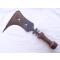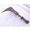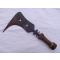 trés beau poignard en acier forgé en forme de croissant , poignée en bois , pommeau rond