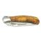 Manche 12 cm en bois d'olivier et mitre inox mat, ressort guilloché à la main et abeille soudée.