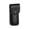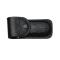 Etui en cuir noir surpiqué avec gaufrage et passant de ceinture.
