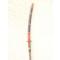 Naginata Japonaise époque Edo. Longue lame courbe et contre tranchant a dos plat. ,, Longue soie rectangulaire percée de 2 trous = non marquée , Longue hampe de section ronde , renforçée d'enroulements teintés rouges ...Talon en acier de curieuse forme pointue , Légères traces d"anciene graisse noircie superficielle sur l'acier du fer cachant la ligne de trempe, un léger nattoyage minutieux redonnera toute sa fraicheur à la lame dont la pointe et le fil sont intacts. = voir photos