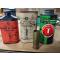 3 bidons de poudre vide et une douille vide calibre 12 laiton.