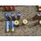 - 7 cartouches à chevrotines , douille en carton bleu , sertissage demi rond