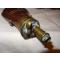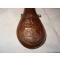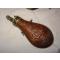 trés belle poire a poudre en forme de montgolfière en cuivre rouge et jaune