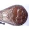 trés belle poire a poudre en forme de montgolfière en cuivre rouge et jaune