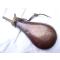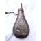 trés belle poire a poudre en forme de montgolfière en cuivre rouge et jaune = belle patine chocolat