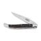 Manche 12 cm en bois de Wengé (c'est un bois exotique brun foncé, avec parfois des zébrures plus claires voire une alternance de bandes foncées et de bandes claires. C'est un bois tropical lourd, dur à très dur, résistant aux termites, aux insectes de bois sec, ainsi qu'aux champignons, peu imprégnable). 2 mitres inox brillant, ressort guilloché à la main et abeille soudée.