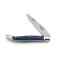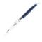Manche 12 cm en hêtre teinté bleu 2 mitres inox brillant, ressort guilloché à la main et abeille soudée.