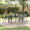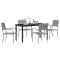 5 meubles de jardin gris en poly rattanCe set de quatre chaises est fait pour le style moderne et la praticité dans tout espace extérieur. Le rattan PE est beau et facile à entretenir, imitant le vrai rotin, et le cadre en acier revêtu est solide, garantissant des repas à l'extérieur agréables dans n'importe quel cadre. Apparence stylée : Le design gris chic se marie avec toute déco extérieure, créant une ambiance sympa pour les rencontres. Sa surface texturée est non seulement jolie mais aussi confortable, idéale pour des repas décontractés en famille ou entre amis. Résistance à la météo : Ces chaises, faites à partir de rattan PE, sont solides et peuvent résister aux intempéries, parfaites pour un usage extérieur toute l'année. Tu peux les garder dehors sans te stresser pour les dégâts dus au soleil ou à la pluie. Entretien facile : Ce matériau synthétique est hyper facile à nettoyer ; un simple coup d'éponge avec de l'eau chaude et elles restent impeccables. Pas de tracas avec l'entretien, c'est idéal pour un usage quotidien. Fonctionnalité empilable : Ces chaises s'empilent, te rendant la vie plus facile pour le rangement, une super solution pour les petits patios ou balcons. Leur capacité à s'empiler ajoute flexibilité et commodité à ton extérieur. Confort d'assise : Avec une hauteur d'assise de 42 cm et un bon espace, ces chaises offrent confort pour des repas joyeux ou des moments de farniente dans le jardin ou sur le patio. Le design est idéal pour la plupart des adultes. Maximum 110 kg par siège.