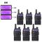 6x Talkies walkies avec socles de chargement, batteries, antennes, écouteurs, dragonnes, clips d'attaches, et chargeur (ordi).