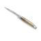 Manche 12 cm façon corne blonde avec croix 2 mitres inox mat, ressort guilloché à la main et abeille soudée.