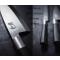 La lame de 16,5 cm est en acier inox poli, le manche est le résultat de deux mélanges : polypropylène et poudre de bambou (anti bactérien naturel). La particularité du manche vient du fait qu'il n'est pas inséré comme les traditionnels couteaux japonais mais enclavé complètement dans la lame ce qui le rend totalement figé dans la lame et donc inamovible.