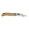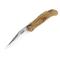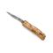 Manche 12 cm en olivier gravé motif sanglier finition mat, ressort guilloché à la main et abeille soudée.