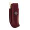 Étui en cuir bovin pleine fleur, muni d’un passant vertical pour un porté à la ceinture. Étui pouvant accueillir les couteaux de chasse pliant de 12 cm de manche, fermeture par bouton pression et surpiqué.