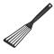 Spatule résistante aux hautes températures pour poêles enduites. Le nylon noir spécial de haute qualité résiste à la chaleur jusqu'à 270 °C, les bords fondus appartiennent donc au passé. La surface de rotation fendue permet à l'excès de graisse de s'écouler et le bord avant fin glisse simplement sous les aliments. La conception de la poignée solide avec un trou de dégagement tient fermement et confortablement dans la main. Une petite rainure à l'arrière du manche empêche la spatule de glisser dans les bols ou les poêles.