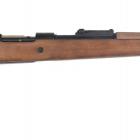 Fusil Karabiner 98k : En entrée en service en 1935 au titre de principal fusil d'infanterie de l’armée allemande, cette arme produite à des millions d’exemplaires par Mauser était appréciée pour la robustesse de son mécanisme - la légendaire boitier/culasse Mauser - et sa précision à grande distance. Cette arme était chambrée d’origine en calibre 8 × 57 IS pour « Infanterie Spitz ». Bien qu’il possédât une hausse à feuillet 300 mètres et plus, doté d’une lunette de tir, il équipait les tireurs d’élites allemands.