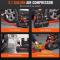 Compresseur d'air gallon : notre 900W Un moteur sans huile entraîne le compresseur jusqu'à une vitesse de 3500/2800 tr/min et un débit d'air de 90 PSI. Il est idéal pour alimenter une variété d'outils pneumatiques et à air, tels que les cloueuses, les clés à choc, les pistolets à peinture, les tournevis pneumatiques, et est parfait pour le gonflage des pneus, la réparation automobile, la peinture au pistolet, le clouage du bois, etc.