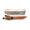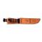 Etui en cuir marron clair surpiqué avec logo Ka-Bar et USMC avec certification de la fabrication au Mexique.