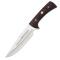 Un couteau de chasse à lame lisse en acier inoxydable X50CrMoV15 résistant à la corrosion avec inscription Muela "Jabali" sur la lame.