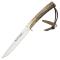 Un couteau de chasse à lame fine, lisse en acier inoxydable X50CrMoV15 résistant à la corrosion avec inscription Muela sur la lame.