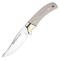 Manche en micarta beige (matériau composite à base de résine), sécurité demi-garde pour protéger l'index.