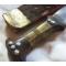 Lame en acier, poignée en bois orné de clous en acier et filigrane en laiton.