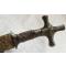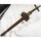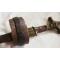 Poignée en bois, garnitures en laiton. Lame en acier à double tranchant .