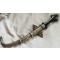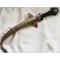 Poignée en bois, garniture en argent et bronze. Lame en acier à double tranchant .