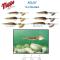 Ces leurres associent les effets de nage d'un streamer en fibre, spécialement conçu pour la pêche au lancer et les pulsations et les signaux optiques d'une Aglia. Le Streamer est monté sur un axe souple avec un hameçon simple en tête et un petit triple "voleur" en queue. Sa robe est composée de longues fibres où se marient pas moins de 10 coloris et où sont présents les signaux-clés : oeil,branchies, ligne latérale, microflashes.